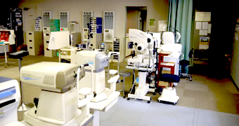 角膜内皮細胞検査、視野検査(FDT・ハンフリー)、眼底カメラ、OCT(眼底断層撮影)など最新の眼科検査機器を備え、コンタクトレンズ、白内障、緑内障、眼底疾患など眼科総合診療を行っています。手術やレーザー治療の必要な方は本院に案内しますが、症例に応じて大学病院、公的病院との連携治療も行っております。目の病気にお悩みの方は、どうぞお気軽にご利用ください。